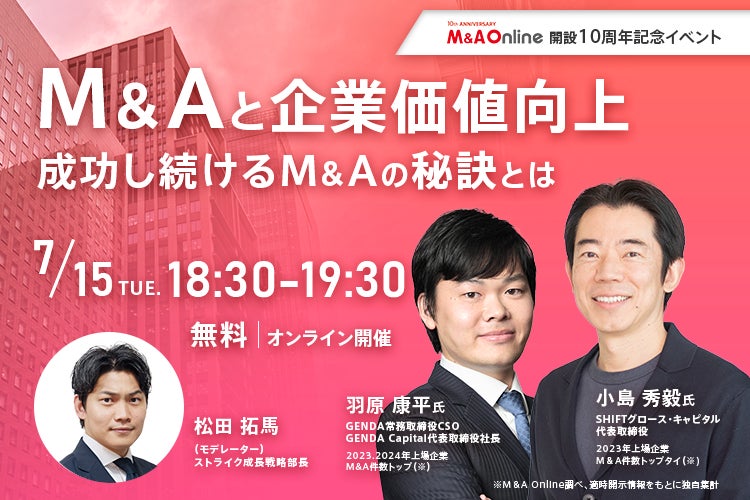 株式会社ストライクが運営するM&Aニュースサイト「M&A Online」は、サイト開設10周年を記念し、「M&Aと企業価値向上」をテーマにしたトークライブを2025年7月15日(火)に開催します。