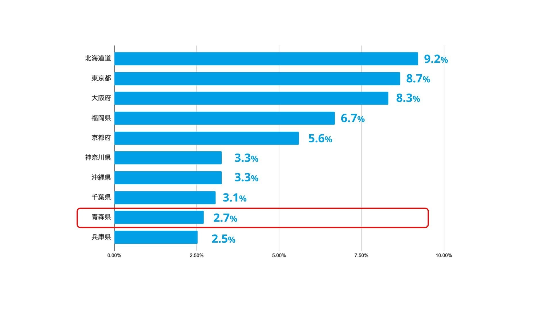 今後働いてみたい日本の地域は、「北海道」(9.2%)、「東京都」(8.7%)、「大阪府」(8.3%)が上位となり、観光や就業機会の多い地域が人気を集めました。また「青森県」(2.7%)が上位に入った点も特徴的です。青森県観光入込客統計調査(令和5年)によると、青森県には台湾や香港、中国からの宿泊実績が多く、こうした訪日観光の実態と重なるかたちで、一定の就業関心が示されたと考えられます。(*2)