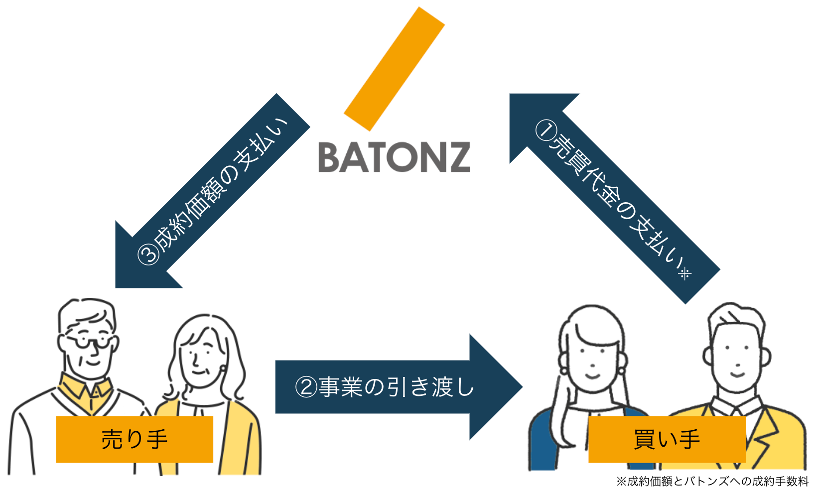 これまでバトンズには、M&Aにおける売買代金の支払いにあたり、会社や事業の引き渡しが行われるのか、支払いすべきタイミングがわからないなどの決済に伴うご相談が多く寄せられていました。「バトンズ安心決済」では、バトンズが買い手より一時的に売買代金を預かり、売り手及び買い手より譲渡実行完了(譲渡対象資産全ての引き渡しが完了したこと)の報告を受けてから、売り手に売買代金を支払いますので、従来より安心・安全・確実にM&Aの決済を行うことができます。お申し込みは、譲渡契約締結の7営業日前までに以下のご連絡先までお願いします。