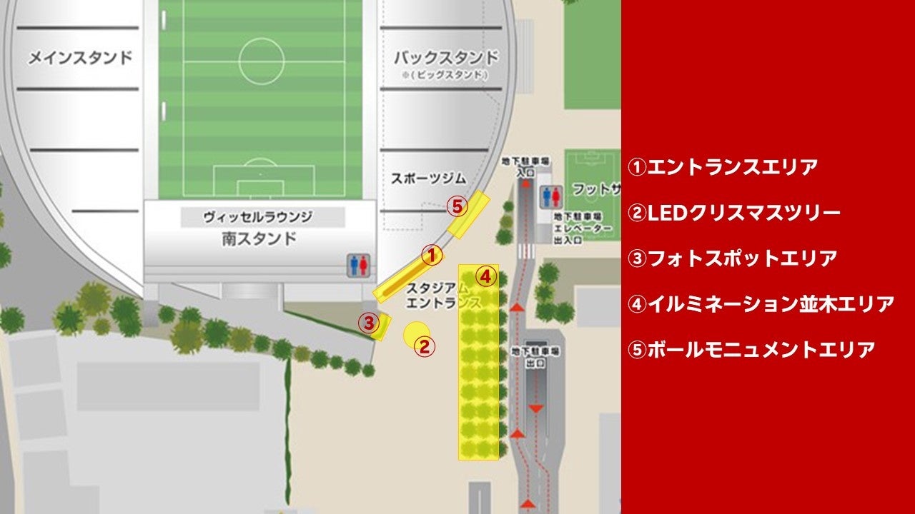 楽天ヴィッセル神戸株式会社(本社:兵庫県神戸市中央区 代表取締役社長:千布 勇気 以下「ヴィッセル神戸」)は、ノエビアスタジアム神戸 正面広場にて、2025年12月12日(金)から25日(木)のクリスマスシーズン限定で、「ノエスタライトアップ2025」を開催いたします。