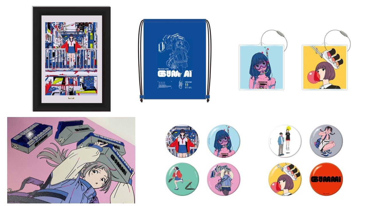 販売グッズ:複製原画、光沢加工キャンバスアート、ナイロンナップサック、アクリルキーホルダー、缶バッチ(会場限定発売)など
