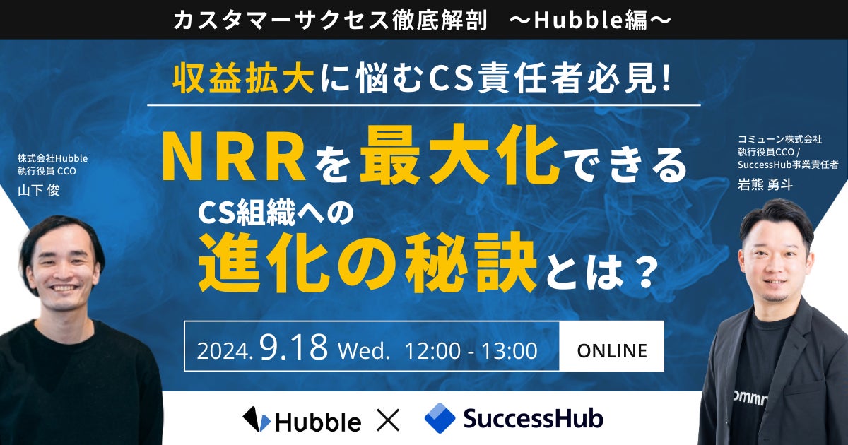 チームの生産性を圧倒的に向上し、カスタマーサクセス組織に成果をもたらす「SuccessHub(サクセスハブ)」を提供するコミューン株式会社(本社:東京都品川区、代表取締役CEO:高田優哉)は、株式会社HubbleがSucceeHubを導入したことをお知らせいたします。