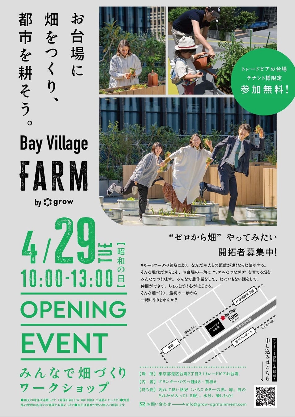 「Bay Village Farm by grow」トレードピアお台場にてオープニングイベントを開催