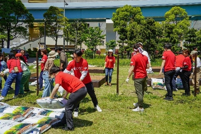 オープニングイベントでは、「みんなで畑づくりワークショップ」を開催し、本物件にご入居いただいている企業の皆さま、またそのご家族の方々約50名にご参加いただき、皆で農作業を通じ、何気ないコミュニケーションを図り、リアルなつながりを感じる場を提供させていただきました。