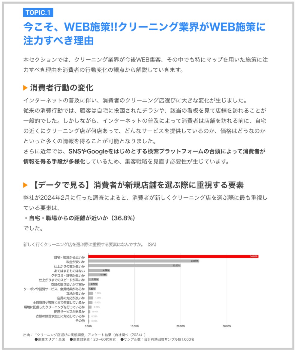 本資料では、クリーニング業界の企業様がこれから取り組むべき集客施策の方法と課題・対策について、弊社が実施したクリーニング店探しの実態調査の結果も交えながら紹介していきます。