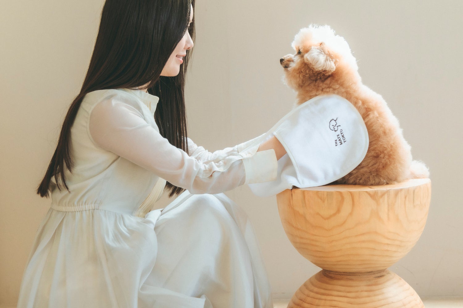ワンちゃんのケアシーンや日常を写真に収めたときに、ワンちゃんや猫ちゃんの愛らしさがより引き立つように、白地にブランドロゴ刺繍を施したシンプルなデザインです。ペットケア用品でありながら使うたびにワクワクできるよう、見た目の愛らしさにもこだわりました。