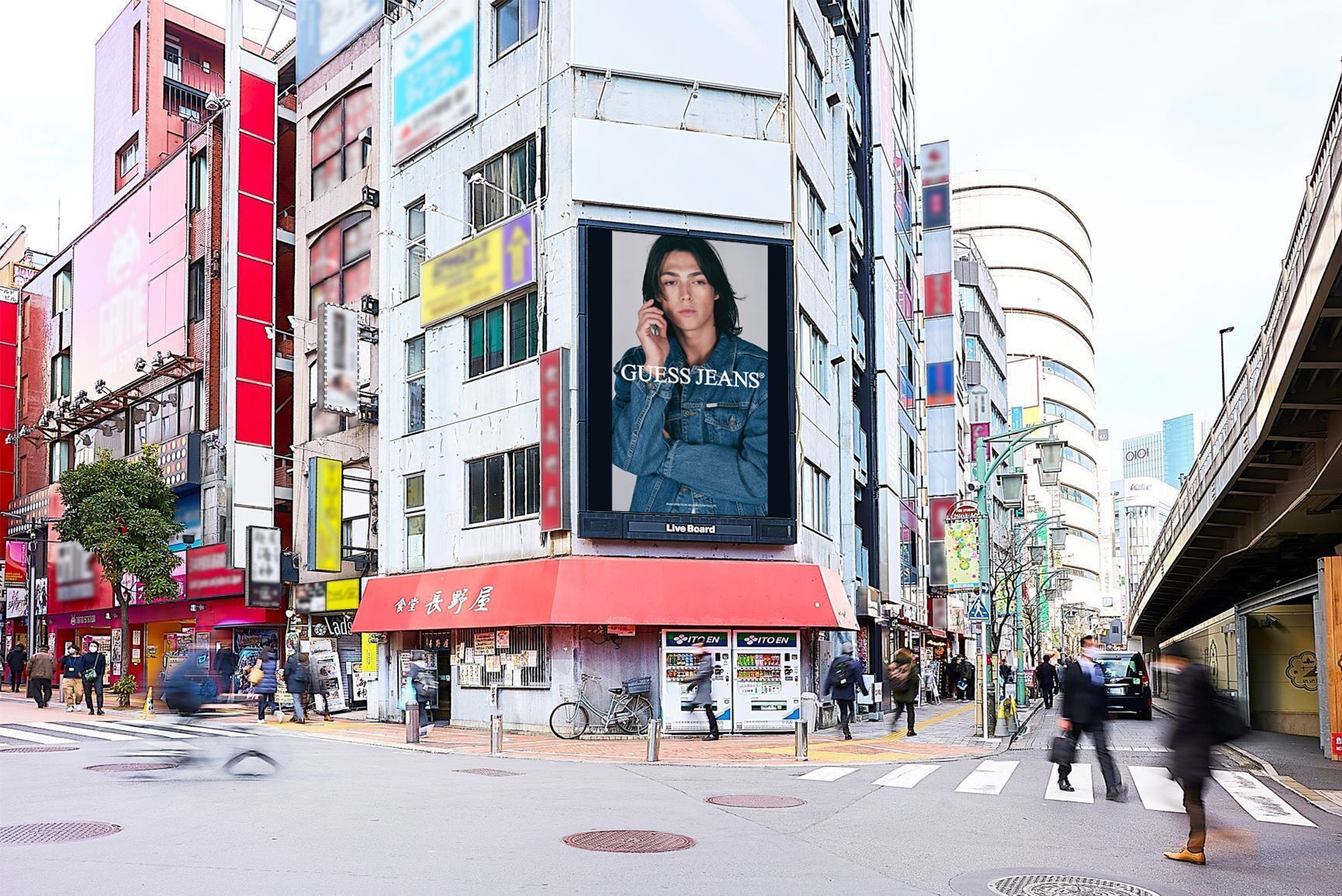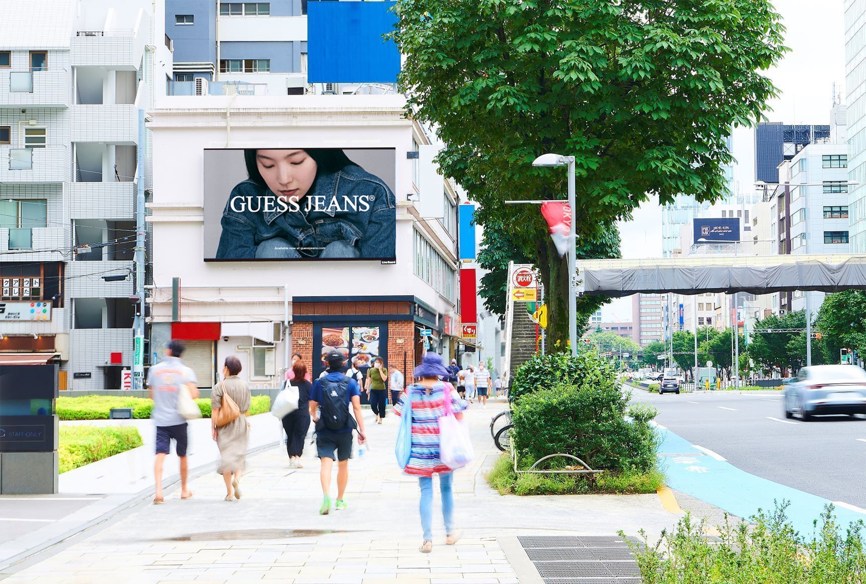 タクシー広告以外にも、都内を中心に屋外施策を展開することで、タクシーでの移動中から乗降車後の街中まで「GUESS JEANS」の世界観を感じることができます。