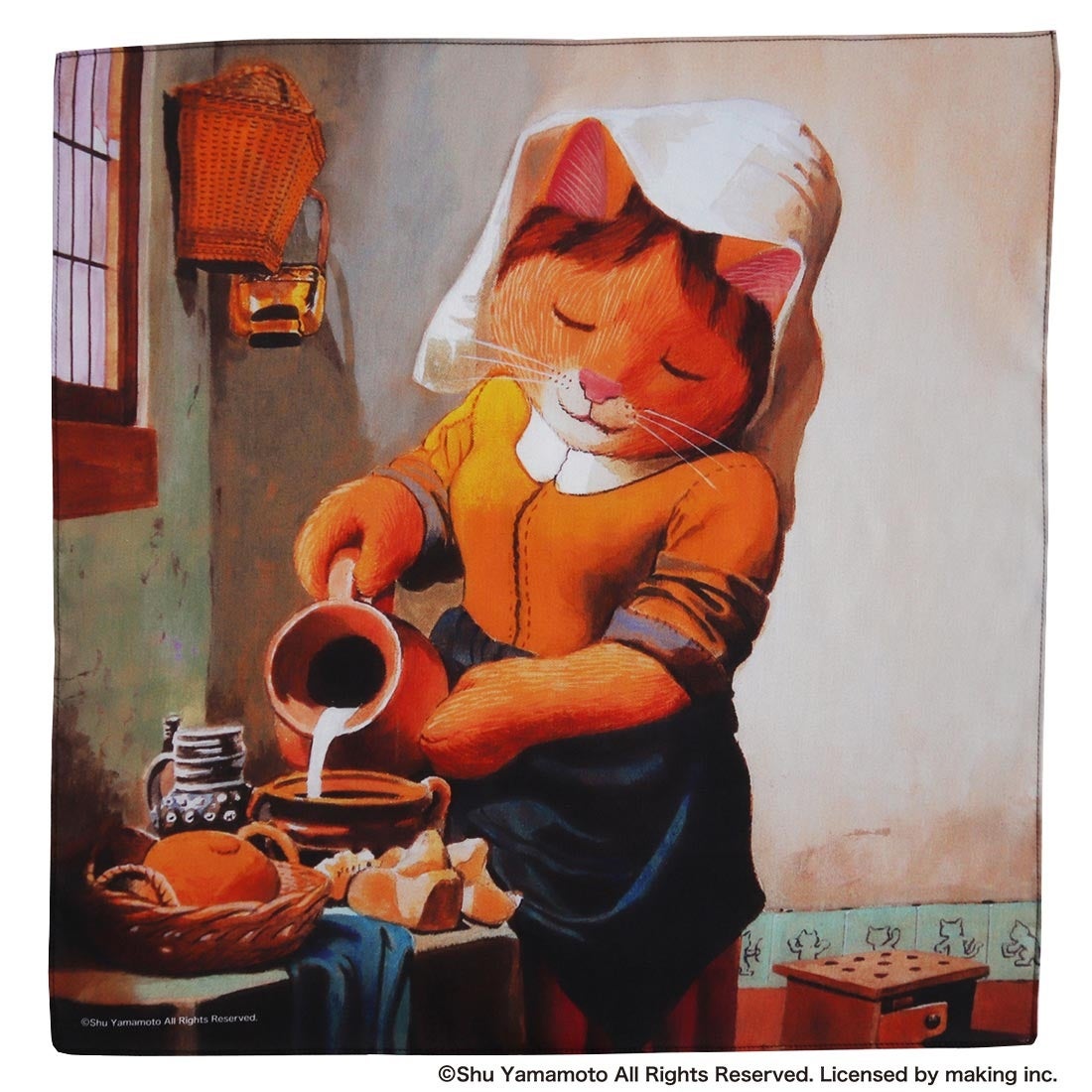 商品名:シュー・ヤマモト『キャットアート』スマホ拭きハンカチ