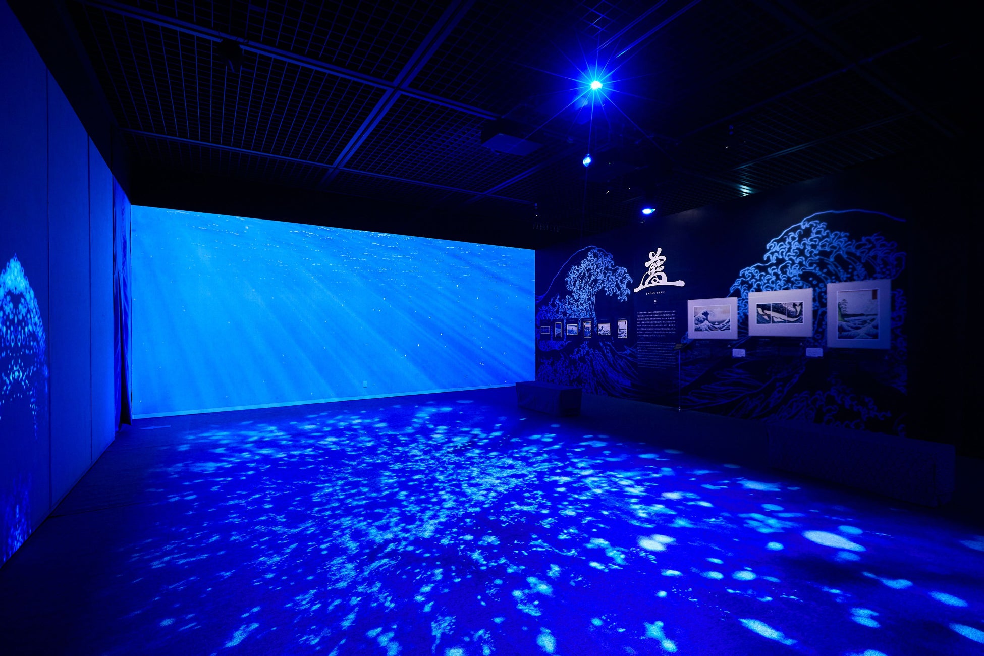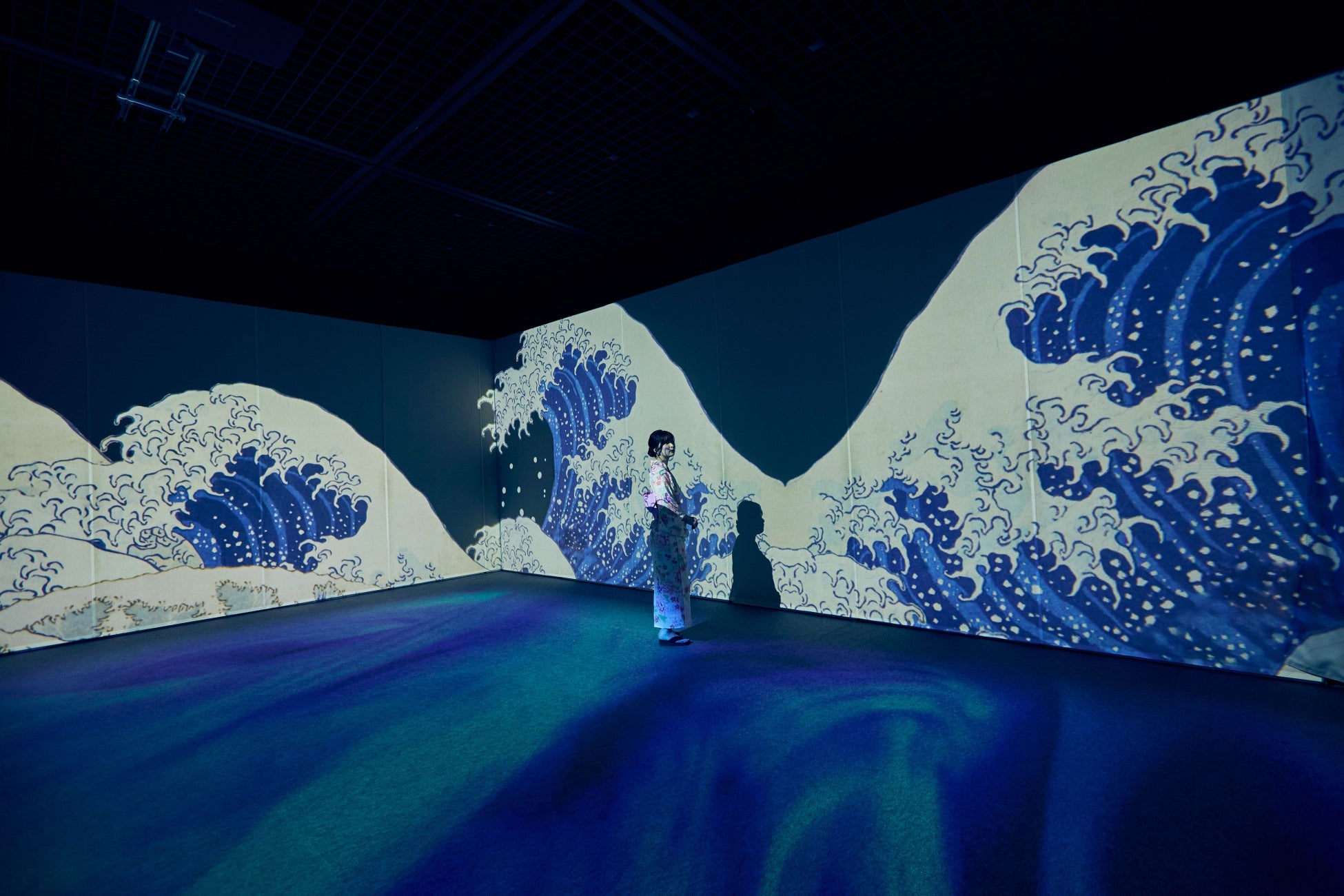 立体映像空間で鮮やかな浮世絵の世界に没入できる体感型デジタルアートミュージアム。大海や荒波のダイナミックな作品の「水の表現」への没入体験と幻想的な青の空間に浸る唯一無二の浮世絵空間。