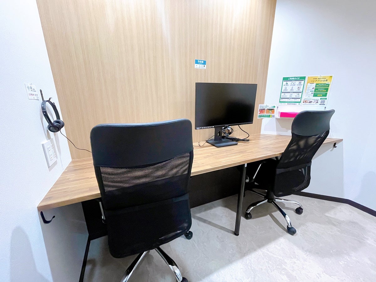 各個室には、27インチの4Kモニターが完備。広々した空間で机幅も広いため、長時間の利用も快適にお過ごしいただけます。
