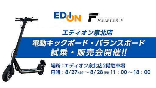 【MEISTER.F】電動キックボード・バランスボードの試乗・販売会第3弾、エディオン泉北店で開催決定