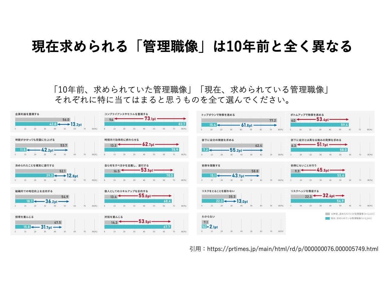 しかし、今の管理職世代はそのさらに上の管理職を見て育っているため、このように求められているスキルはわかっていてもなかなか実行できないというギャップが生まれがちなのも確かなように思われる。