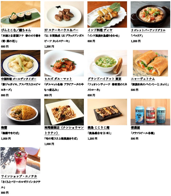 参加店舗:グランド ハイアット 東京/インド料理 ディヤ/37 ステーキハウス & バー/信濃屋/中国料理 ゴールデンタイガー/ニャーヴェトナム/南翔饅頭店/梅蘭/ぴんとこな/鐵ちゃん/ヒルズ ダル・マット/焼鳥 ここりこ庵/リゴレットバーアンドグリル/ワインショップ・エノテカ
