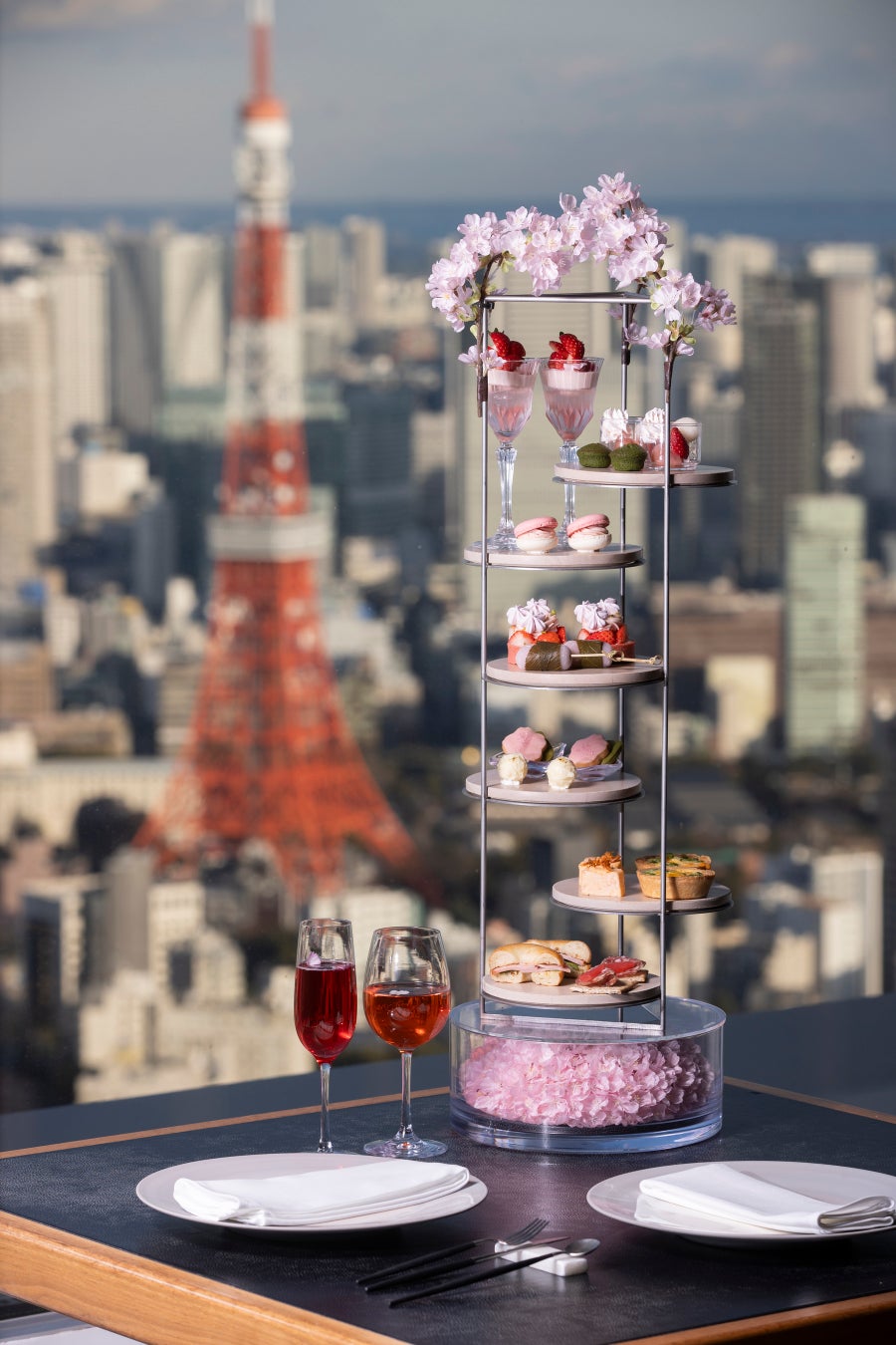 六本木ヒルズ森タワー52階にある「THE SUN & THE MOON」のレストラン「THE SUN & THE MOON (Restaurant)」では、桜とお花見をテーマに、お茶会をイメージしたアフタヌーンティー「お花見日和の桜アフタムーンティー(Cherry blossoms AfterMOON Tea)」を、期間限定で提供します。