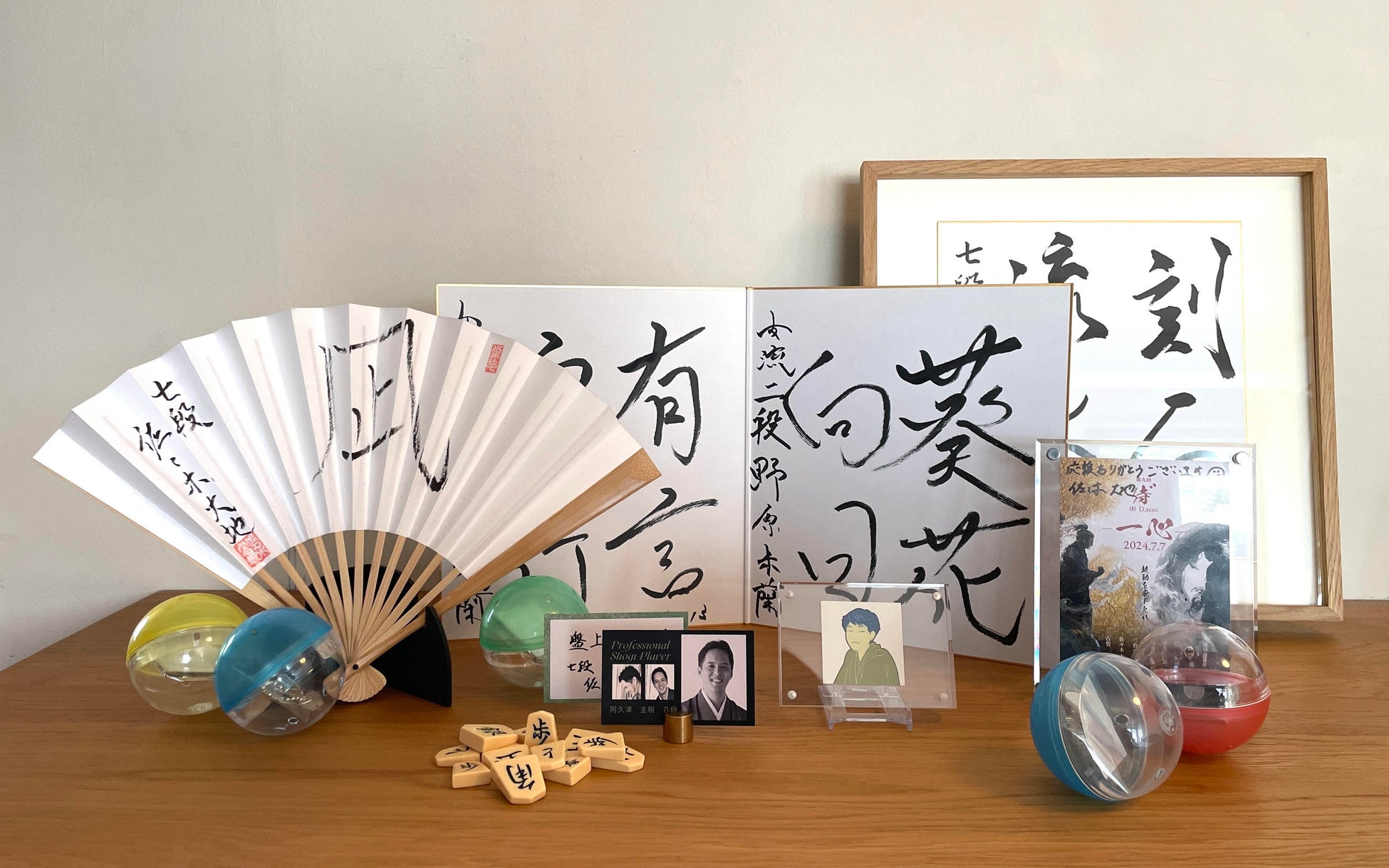 将棋プロ棋士の直筆揮毫(サイン)色紙、扇子、オリジナルデザインの将棋カードなど、憧れの棋士にまつわるグッズを、ぜひこの機会に手に入れてください。