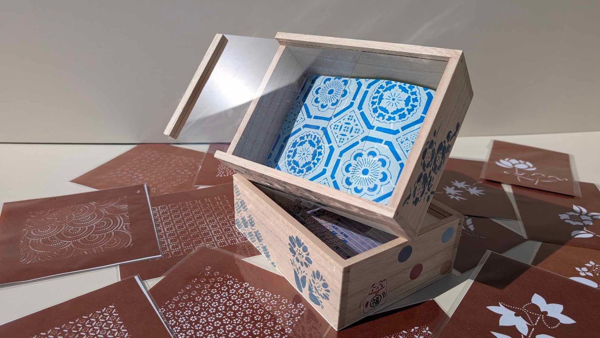 150~200年前の貴重な藍染模様を選び、伝統技法「伊勢型紙」を使って藍染めを体験できます。藍の深い色合いと職人の技が調和する桐の宝箱をつくり、大切な思い出や宝物をそっとしまいましょう。