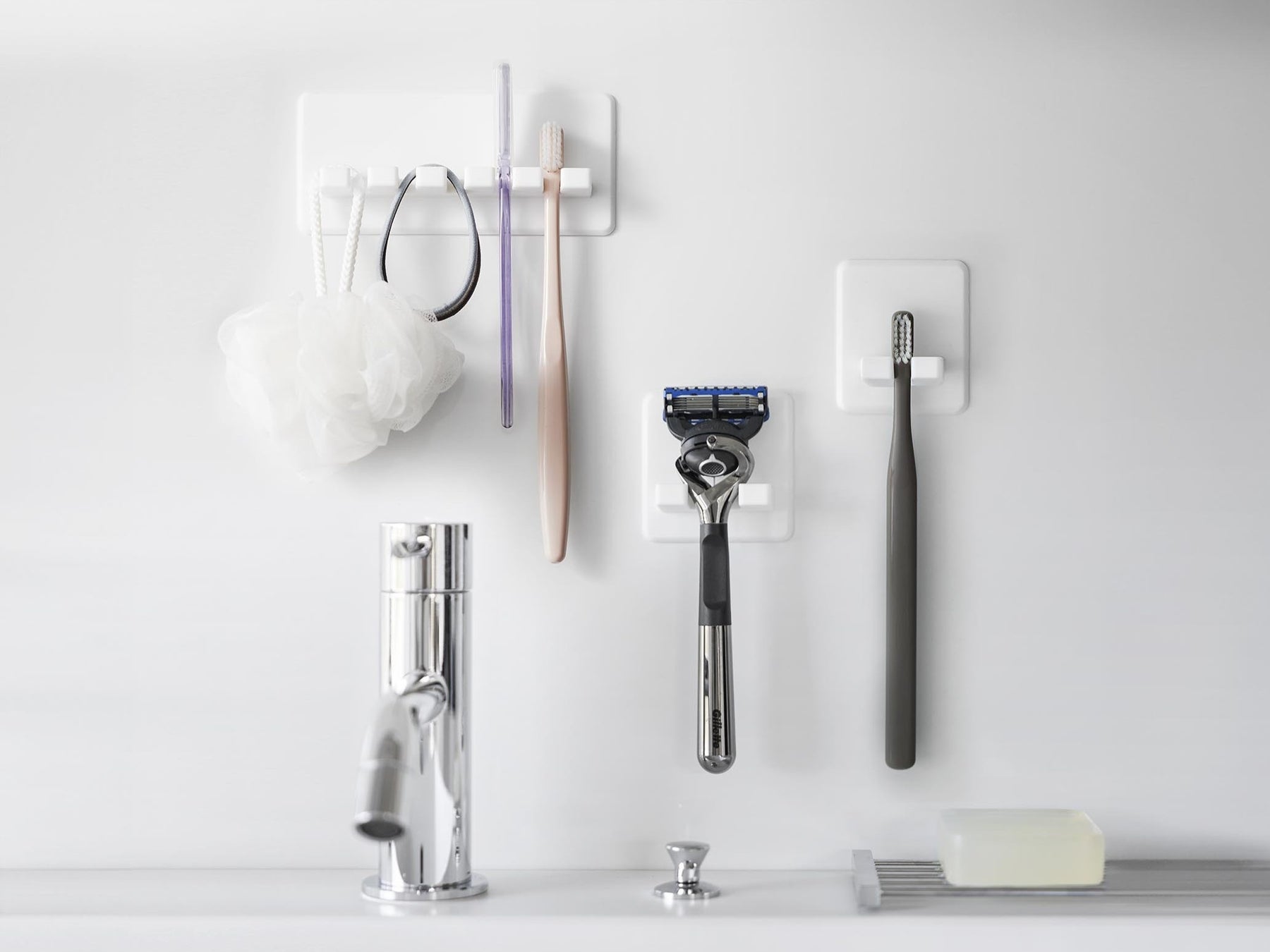 浮かせて収納できるから歯ブラシを衛生的に保てます。柔らか素材でお手入れしやすく、鏡やタイルにも設置可能。