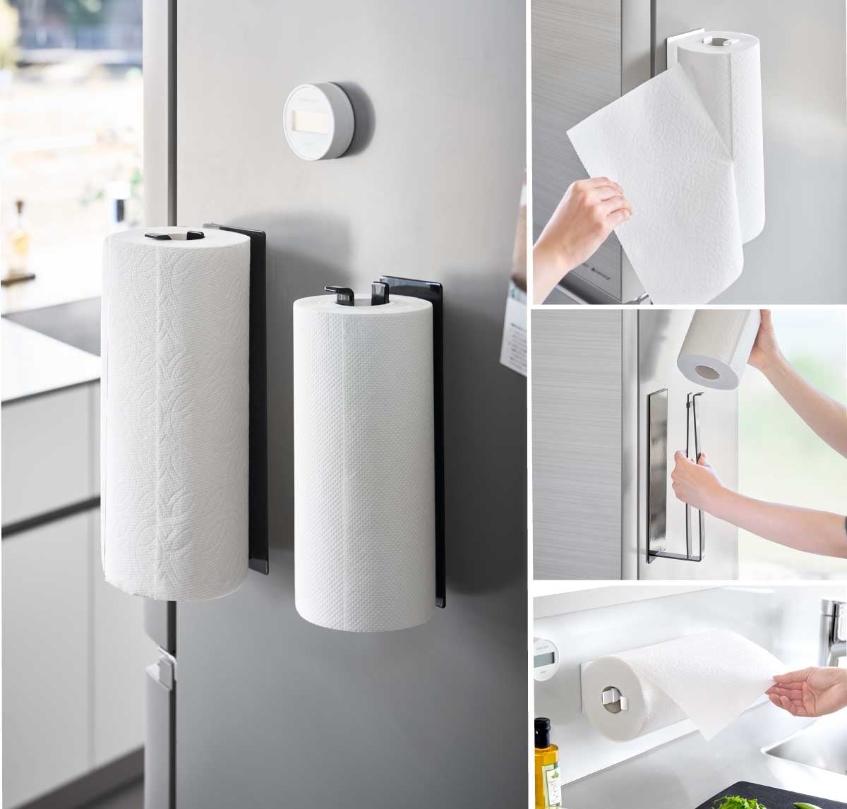 マグネットで簡単に取り付けられるキッチンペーパーホルダー。