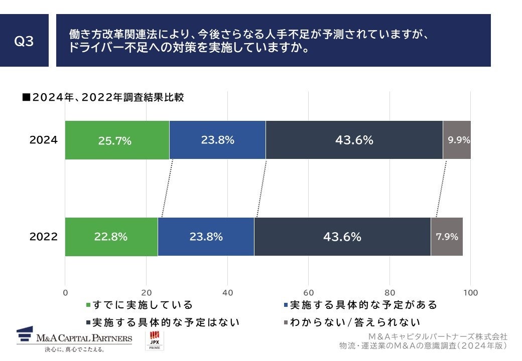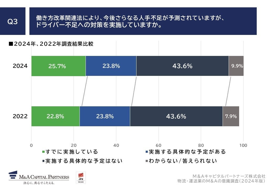 25.7%が、2024年問題に伴うドライバー不足の対策を「すでに実施」、2022年比2.9ポイント増加