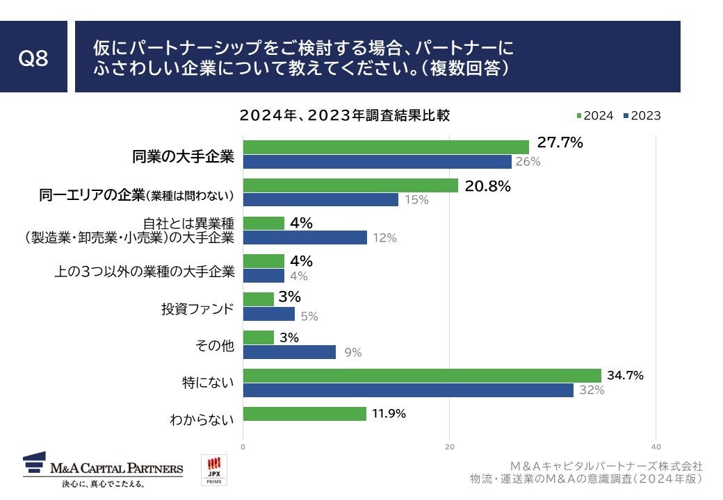 パートナーシップを検討する場合にパートナーとしてふさわしい企業、約3割が「同業の大手企業」と回答、2023年から1.7ポイント増加