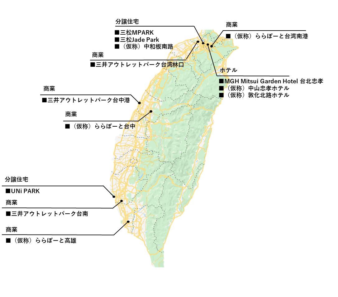台湾3大都市圏において「ららぽーと」および「三井アウトレットパーク」両ブランドの展開が実現