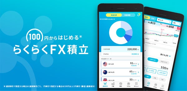 店頭外国為替保証金取引および店頭通貨バイナリーオプション取引は元本や利益を保証するものではなく、相場の変動や金利差により損失が生ずる場合がございます。お取引の前に充分内容を理解し、ご自身の判断でお取り組みください。<『外貨ネクストネオ』 取引形態:店頭外国為替保証金取引 委託保証金:各通貨の基準レートにより計算された取引金額の保証金率4%以上に設定(法人のお客様は、保証金率1%以上となる額または金融先物取引業協会が算出した通貨ペアごとの為替リスク想定比率を取引の額に乗じて得た額のうち、いずれか高い額以上の委託保証金が必要となります。為替リスク想定比率とは、金融商品取引業等に関する 内閣府令第117条第31項第1号 に規定される定量的計算モデルを用い算出します) 売買手数料:0円 『らくらくFX積立』 取引形態:店頭外国為替保証金取引 委託保証金:100%(レバレッジ1倍)、50%(レバレッジ2倍)、33.34%(レバレッジ3倍)(法人のお客様は、100%(レバレッジ1倍)のみ) 売買手数料:0円 【注】お客様がお預けになった保証金額以上のお取引額で取引を行うため、保証金以上の損失が出る可能性がございます。また取引レートには売値と買値に差(スプレッド)が生じます。>
