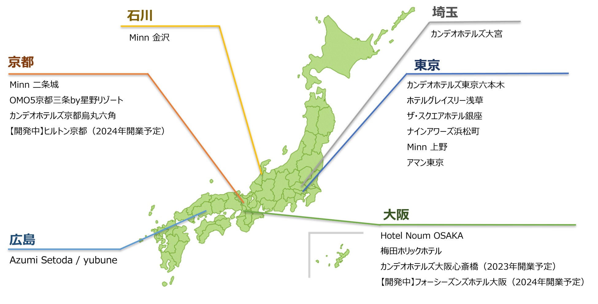 ホテル事業においては、東京建物のデベロッパーとしてのノウハウの活用や、多様なオペレーターとの協業により、さまざまなタイプのホテルの開発・運用を行っております。今後も総合不動産デベロッパーとしてのノウハウを生かし、多様なアプローチで社会課題解決につながるプロジェクトを推進するとともに、立地・案件特性に応じたホテルオペレーターやホテルタイプをベストミックスし、事業価値の最大化を目指してまいります。