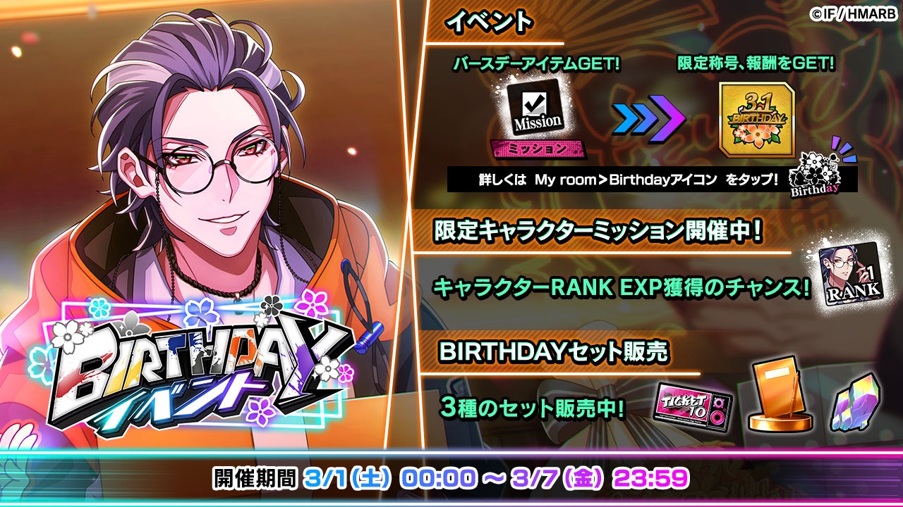 躑躅森盧笙の誕生日を記念し、「SSR【バースデー2024】躑躅森盧笙」を獲得することができるGコレクトや、限定称号やアイテムを獲得できるイベントなどを開催しています。
