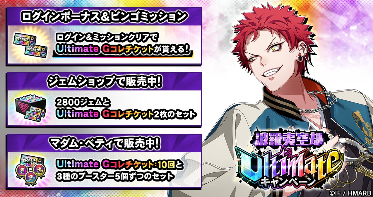 Ultimateカード「SSR【EDGEOUT】波羅夷空却」を獲得することができるGコレクトや、ビンゴミッション・ログインボーナスを開催しています。