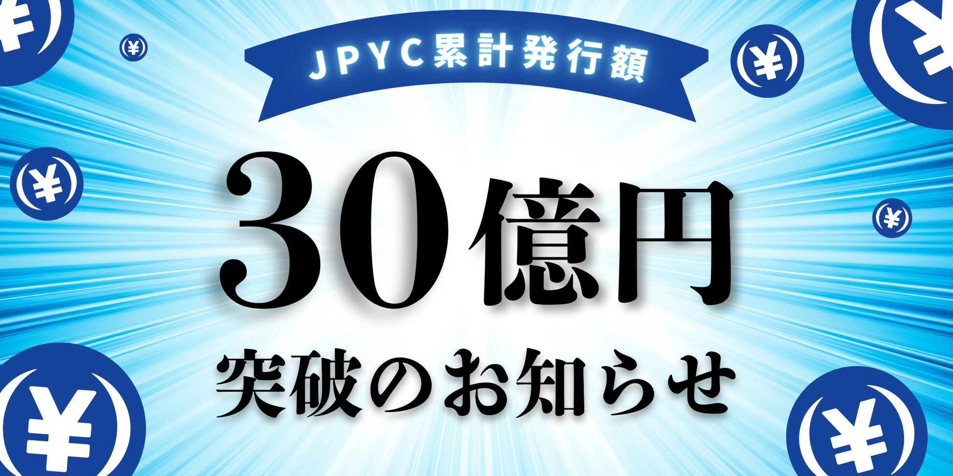 日本円連動ステーブルコイン「JPYC」の累計発行額が30億円を突破