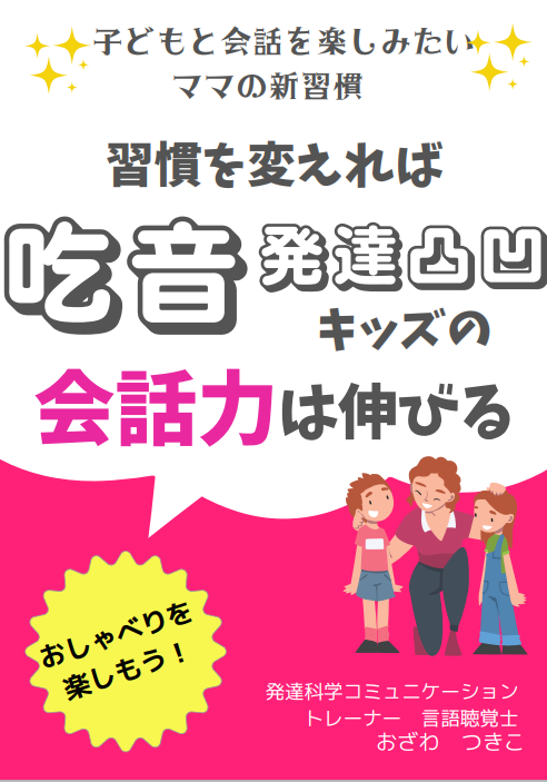 この度、子どもと笑顔で会話したいだけなのに、吃音が気になって会話に集中できないとお悩みの吃音×発達凸凹キッズママに、「子どもと会話を楽しみたいママの新習慣・習慣を変えれば吃音×発達凸凹キッズの会話力は伸びる」と題して小冊子をリリースいたしました。