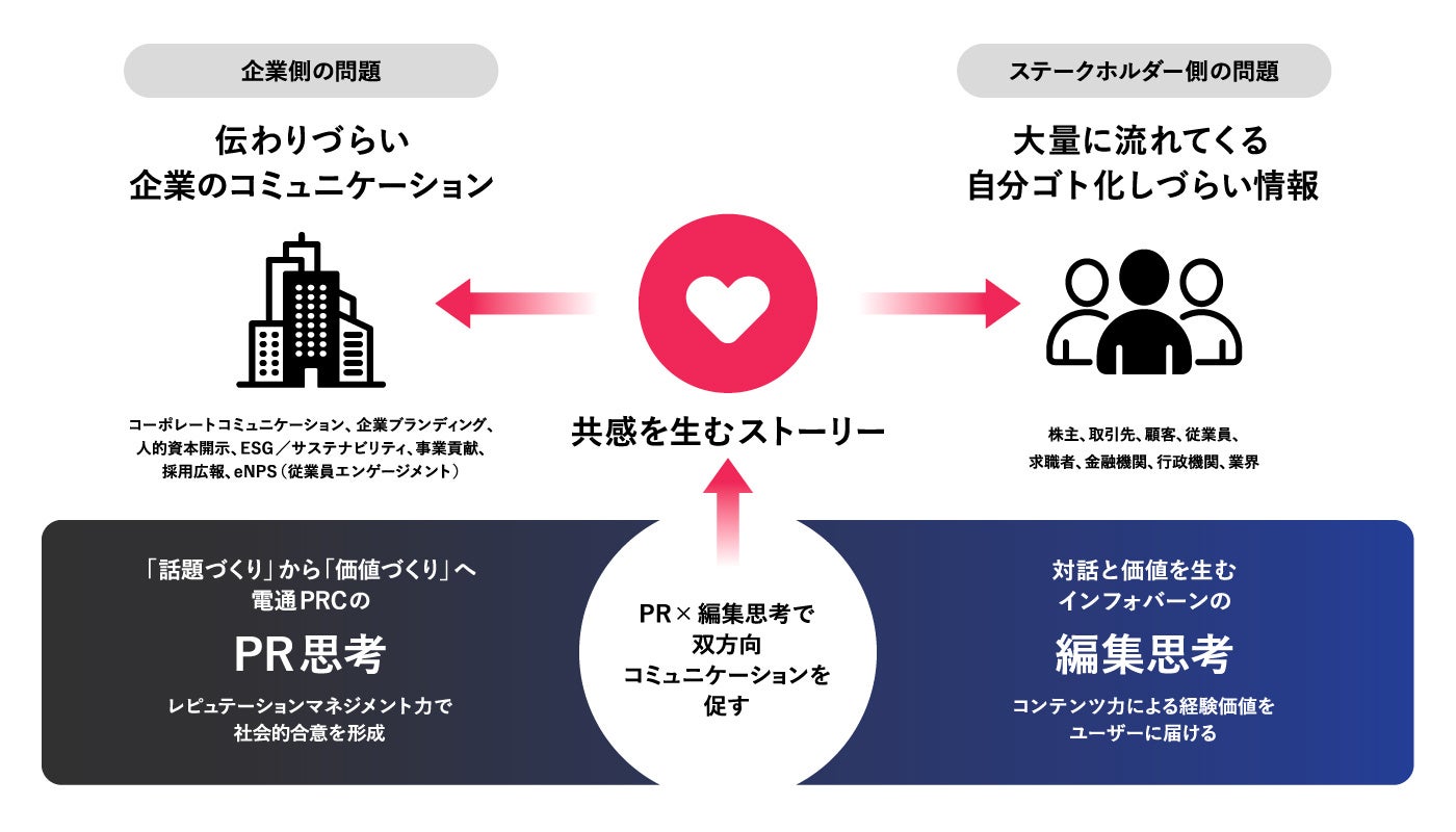 今後も、電通PRCとインフォバーンは両社の「編集思考」と「PR思考」を融合させ、企業がステークホルダーとの対話を通じてより好意的な関係性を構築できるよう、ソリューションの開発に努めてまいります。