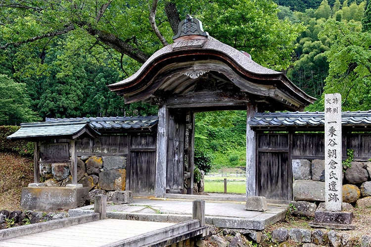 福井市の南東約10キロ、一乗谷にある朝倉氏遺跡は、戦国時代に朝倉氏五代が103年間にわたって越前の国を支配した城下町跡。武家屋敷・寺院・町屋・職人屋敷や道路に至るまで町並がほぼ完全な姿で発掘され、国の重要文化財・特別史跡・特別名勝に指定されています。