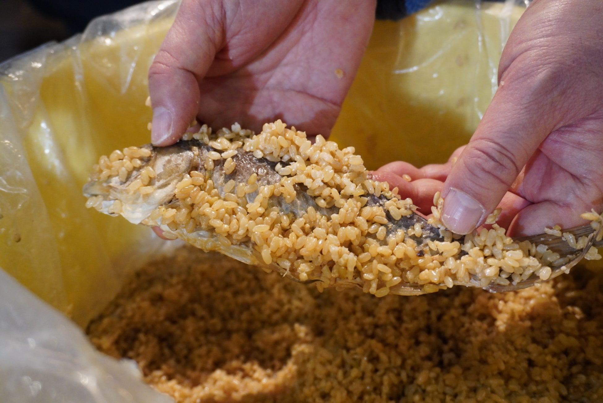 しかし、『合類日用料理抄』に記載された製法は、①旧暦12月に、②塩切せず、ダイレクトに、③したがって、寒鮒を用い、④頭を叩いて壊し、一匹丸ごと、⑤蒸した糯米の玄米で、⑥折敷を利用し、⑦70日目以降に喫食するといったもので、ほんとうにそのような漬け方が可能かどうかについて、市民の皆さんから強い疑問が寄せられています。