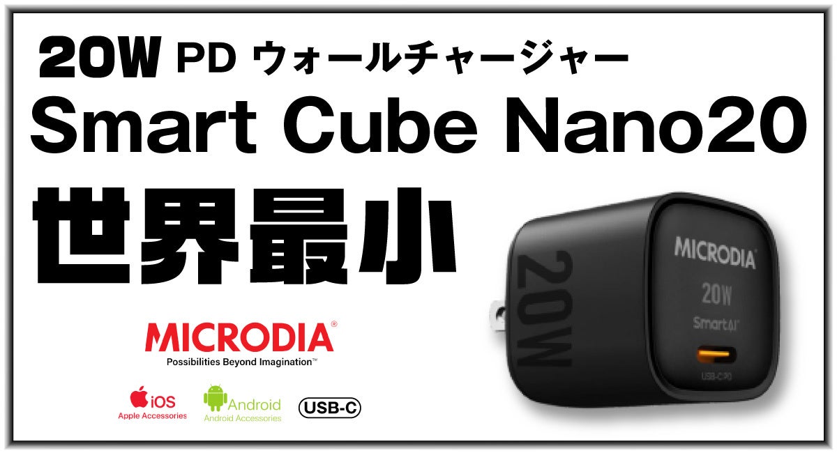 【世界最小】「MICRODIA SmartCube Nano20!」アメリカモバイルアクセサリメーカーMICRODIA社のウォールチャージャー販売決定!
