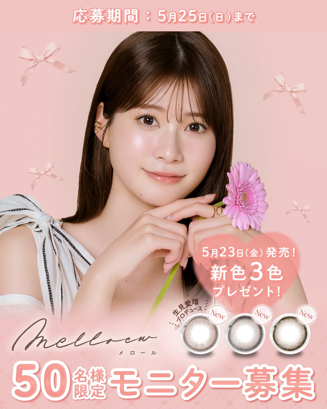 PIA株式会社(本社:東京都品川区 代表取締役:見原博道)は、「めるる」の愛称で親しまれる、生見愛瑠さんがプロデュース・イメージモデルを務めるカラコンブランド『melloew(メロール)』より、新色『Love Cacao(ラブカカオ)』、『Mocha Powder(モカパウダー)』『Truffle Gray(トリュフグレー)』を2025年5月23日(金)に発売いたします。