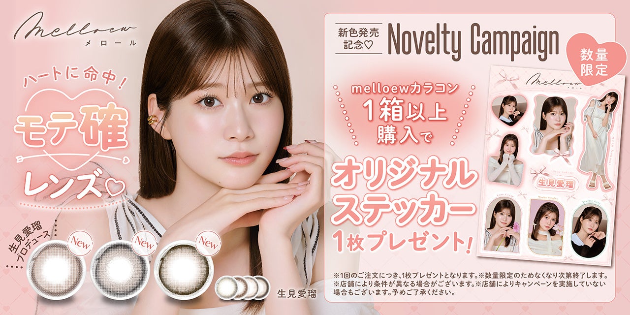 新色発売を記念して、『melloew(メロール)』カラコン1箱以上ご購入でオリジナルステッカーがもらえるノベルティキャンペーンを実施いたします。