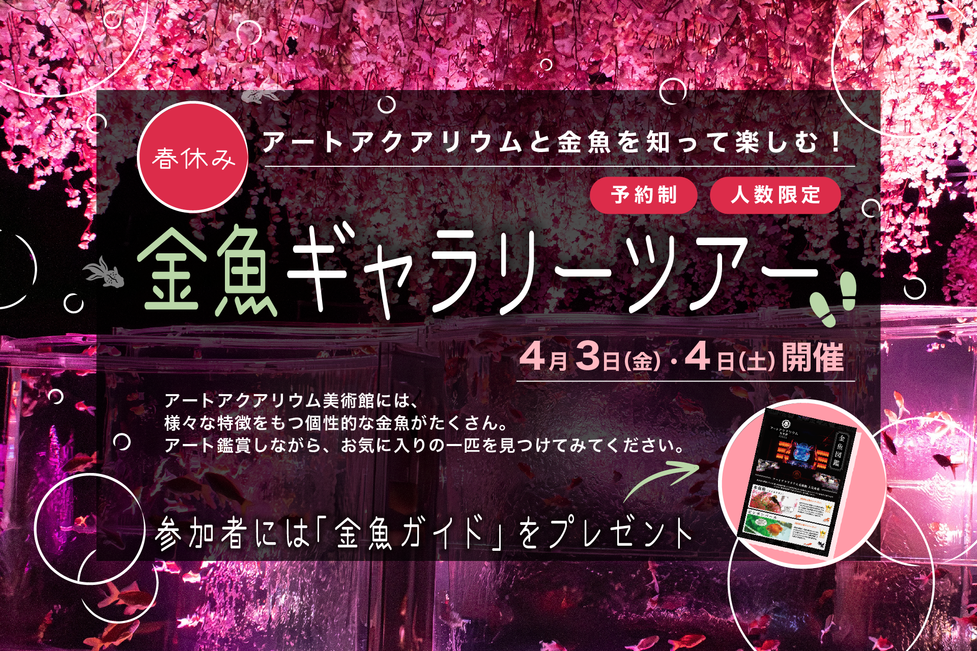 春休みにアートアクアリウム美術館で金魚を知って楽しむ、特別体験を!参加いただいたお客様には、金魚ガイドもプレゼントいたします。