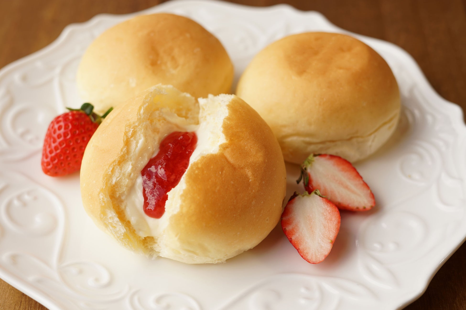 福岡県産の「あまおう苺」を使用したジャムは、クリームのやさしい甘さと相性が抜群です。甘酸っぱい味わいをお楽しみいただけます。