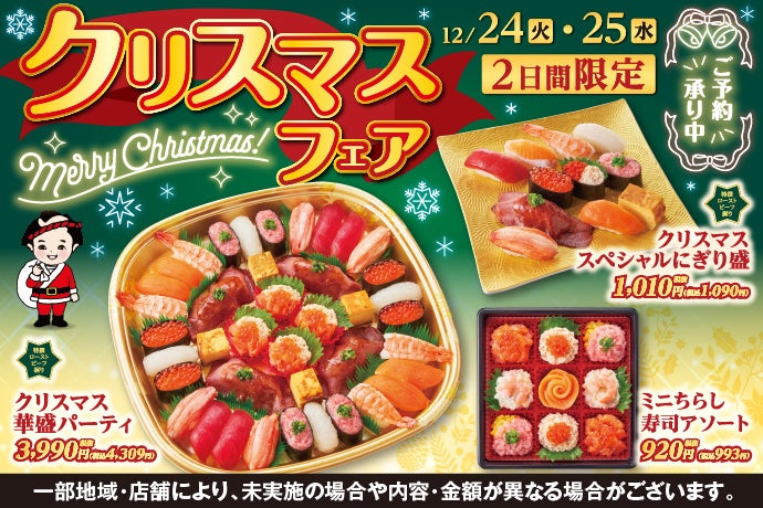 KOZOホールディングス株式会社の子会社である株式会社小僧寿しは、持ち帰りすし店「小僧寿し」にて、12月24日(火)・25日(水)の期間限定で『クリスマスフェア』を開催します。大好評♪ご予約承り中です!