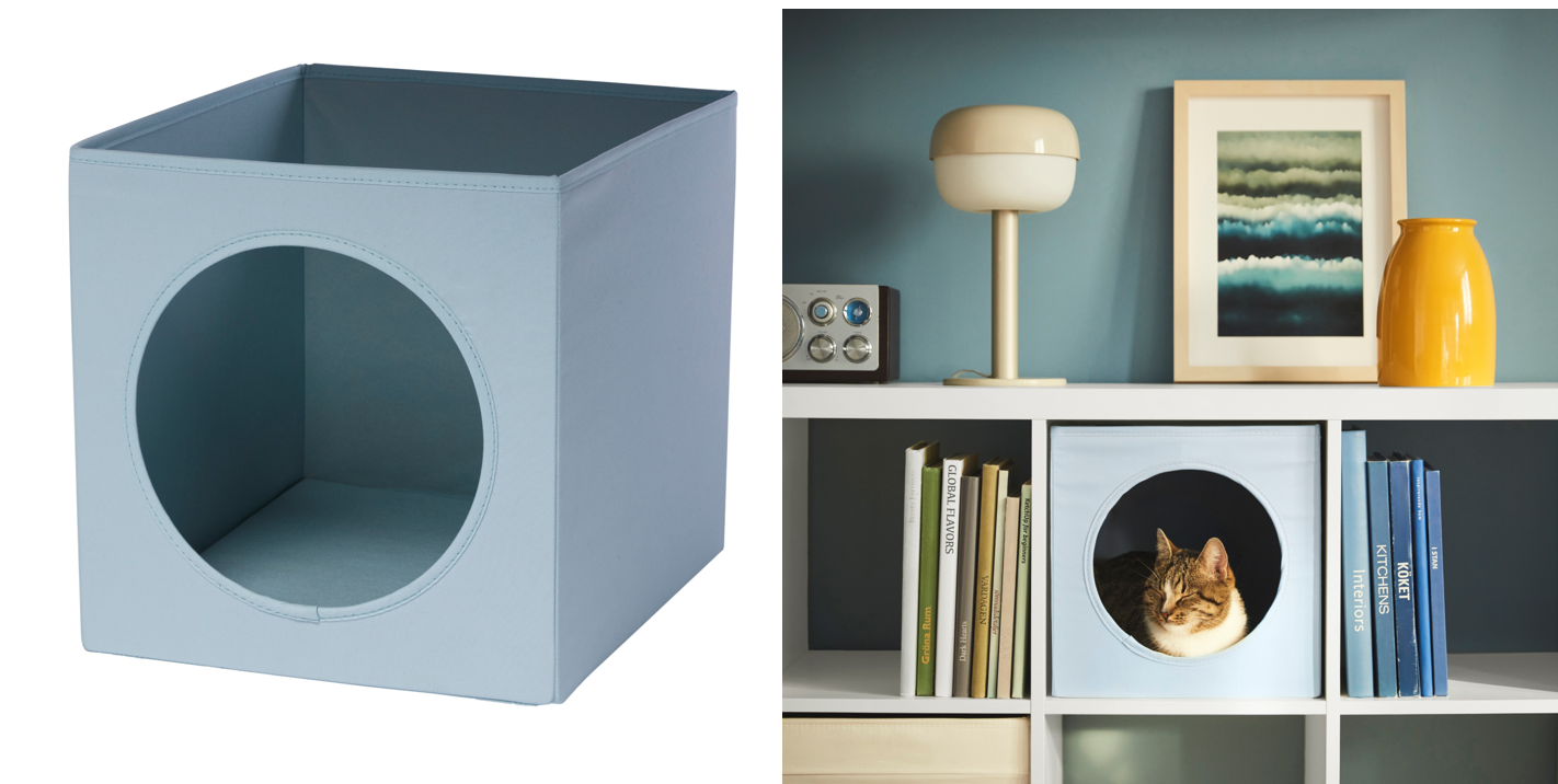 猫が潜り込んで休むのにぴったりな、心地よくておしゃれな家。しかも、このキャットハウスはKALLAX/カラックス シェルフにぴったり収まります。 柔らかなクッションを足して、心地よさをさらにアップさせましょう。