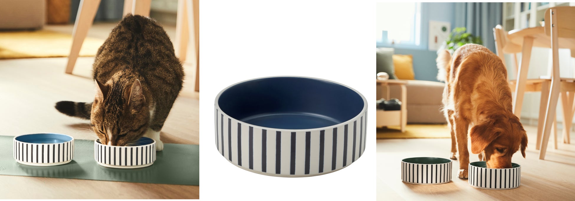 せっ器のUTSÅDD/ウートソッド ペットボウルは頑丈で耐久性があり、毎日の使用に最適です。ストライプが特徴的なモダンなデザインは、部屋のインテリアに簡単に溶け込みます。ボウルはせっ器製で重さがあるので動きにくく、床の上にしっかり安定して置けます。ボウルは、食器洗い機・冷蔵庫対応です。