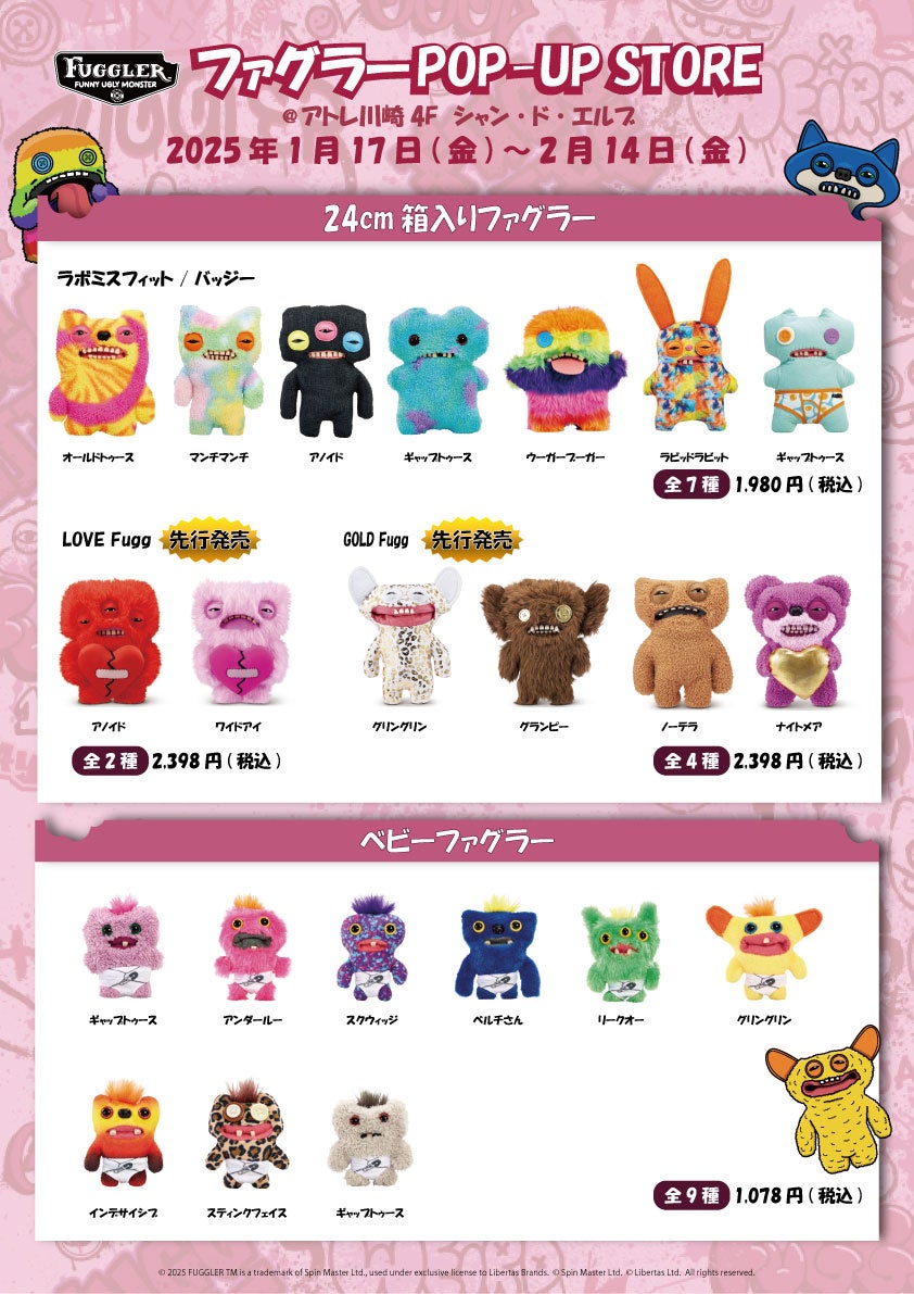 株式会社アトレ(本社:東京都渋谷区、代表取締役社長:髙橋 弘行)が運営する直営ショップ「シャン・ド・エルブ」の催事店舗「シャン・ド・エルブ川崎店」(所在地:神奈川県川崎市)では、世界中で人気のぬいぐるみシリーズ 『ファグラー』のポップアップストアを2025年1月17日(金)から2月14日(金)まで開催します。