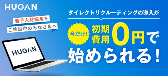 「HUGAN」は、2024年7月に新リリースした若手人材特化型スカウト転職サービスです。ポテンシャル採用を促進させ、中長期的に活躍が期待できる20-30代の人材獲得を成功に導きます。採用決定時の手数料は業界最安値級を実現。さらに現在、期間限定で初期費用無料のキャンペーンの実施をしております。