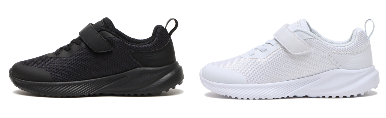 キッズシューズのベーシックスニーカーシリーズが登場。シンプルなデザインかつモノトーンカラーだからシーンを選ばず、通学、運動、普段使いとマルチに活躍!屈曲性のある軽量の厚めソールで、見た目も履き心地も◎広めの履き口と、マジックテープ付ベルトとゴム紐だから、小さい子でも簡単に着脱出来ます。アッパーは通気性の良いソフトなメッシュ素材を使用し、長時間履くことによる不快な蒸れを軽減し、足あたりも柔らかにフィットします。インソールには成長に合わせてサイズ確認ができるつま先プリント付き。