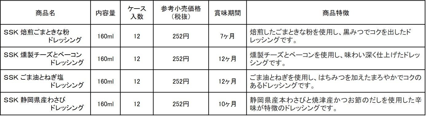 SSKドレッシング ポンカチシリーズから4つの味が新発売!