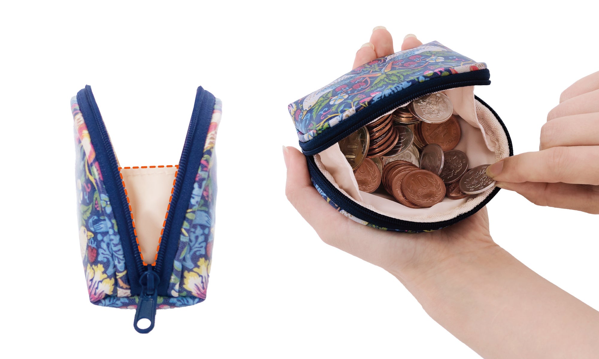 ちょっとしたお出掛けなら、この財布1つでOK♪たくさん入れても大きく開いて見やすい「いちご泥棒」柄のコインケース