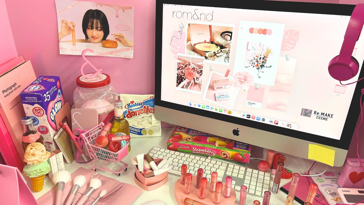 特に注目を集めたのは、rom&ndの新商品「MINI PINK OFFICE」の世界観をそのまま再現した