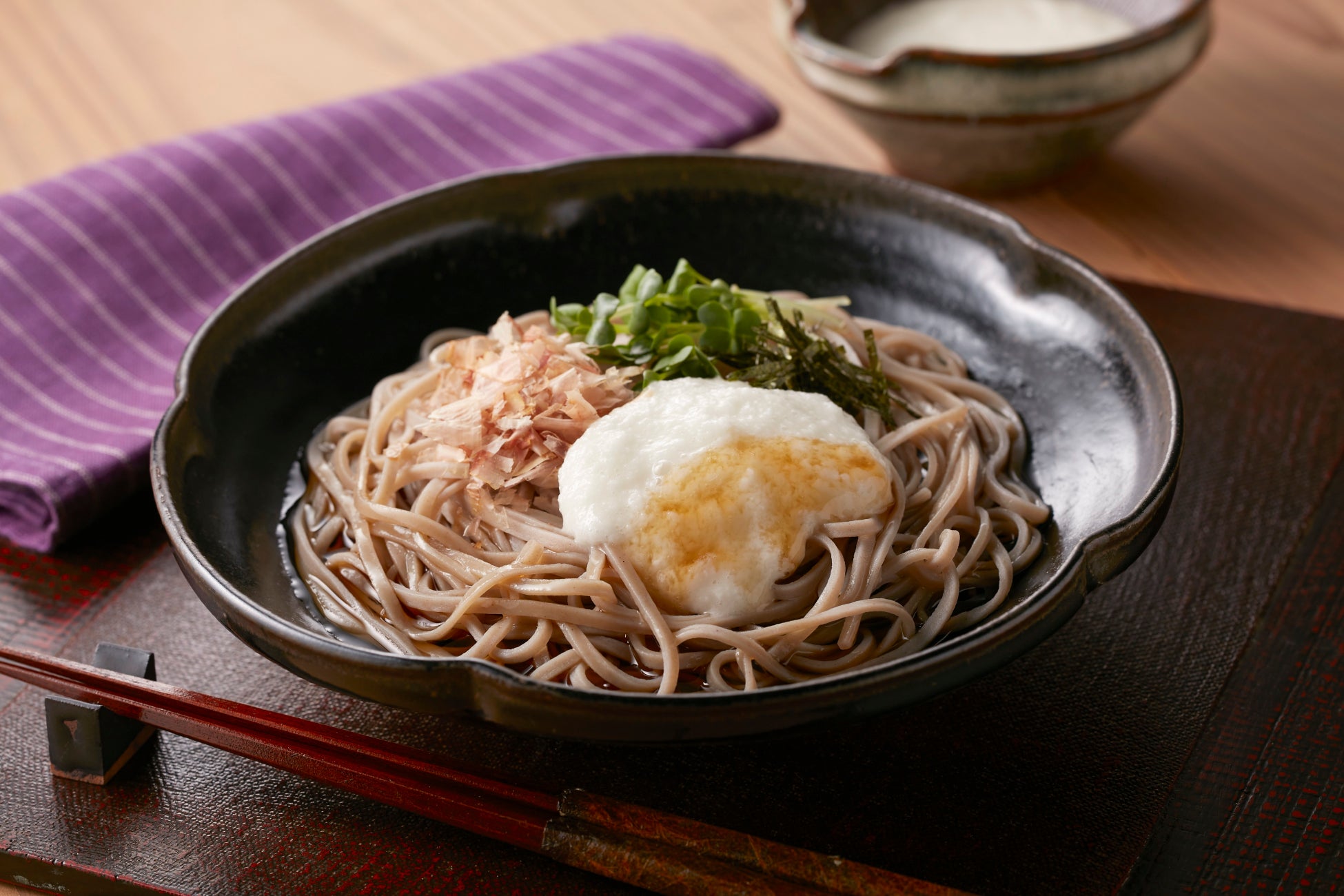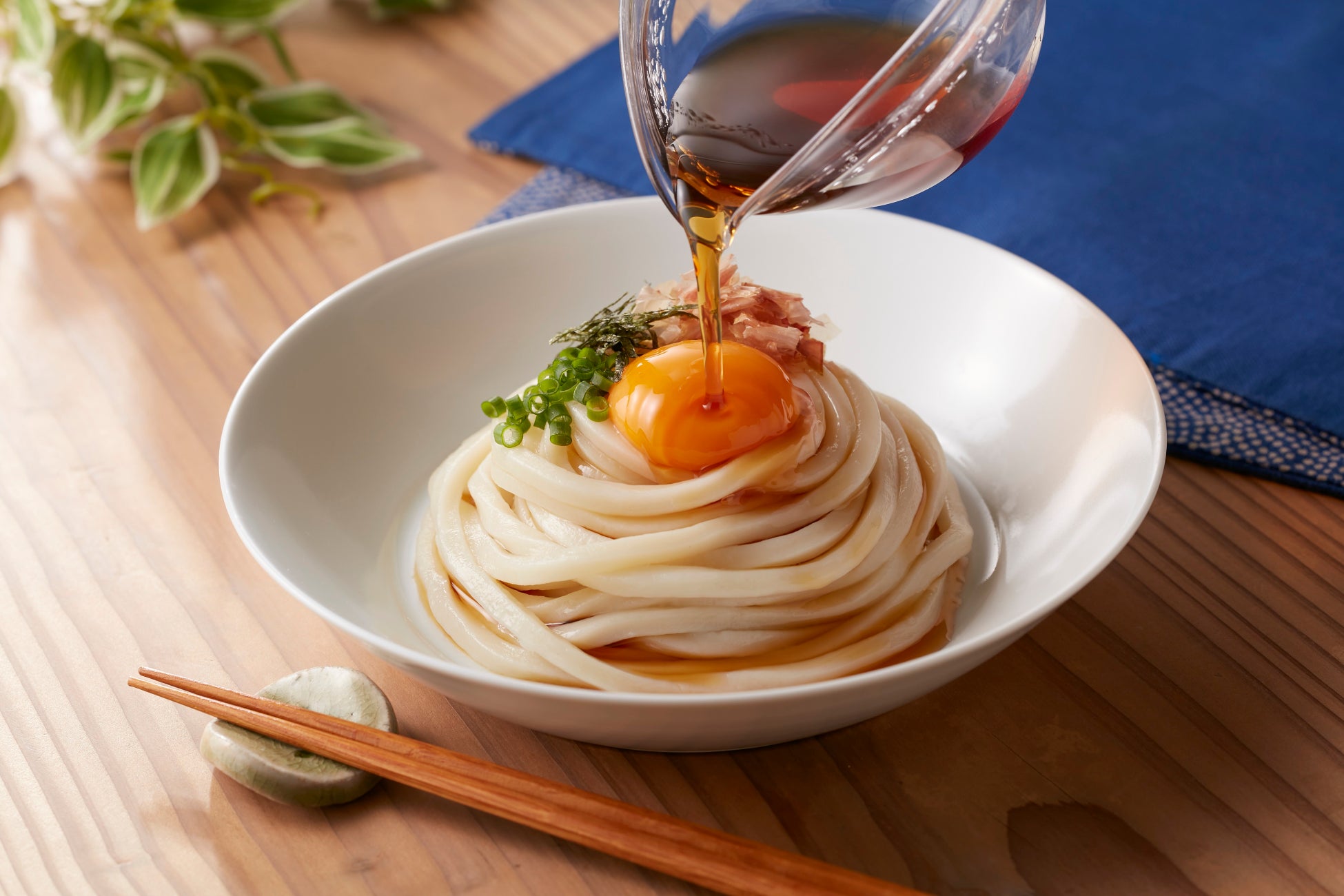 焼きあごだしと北海道産昆布だしを使用しました。隠し味に「梅酢」を加えることで、だしと醤油の豊かなコクを感じさせつつも、最後までさっぱりと召し上がれる絶妙なバランスに仕上げています。