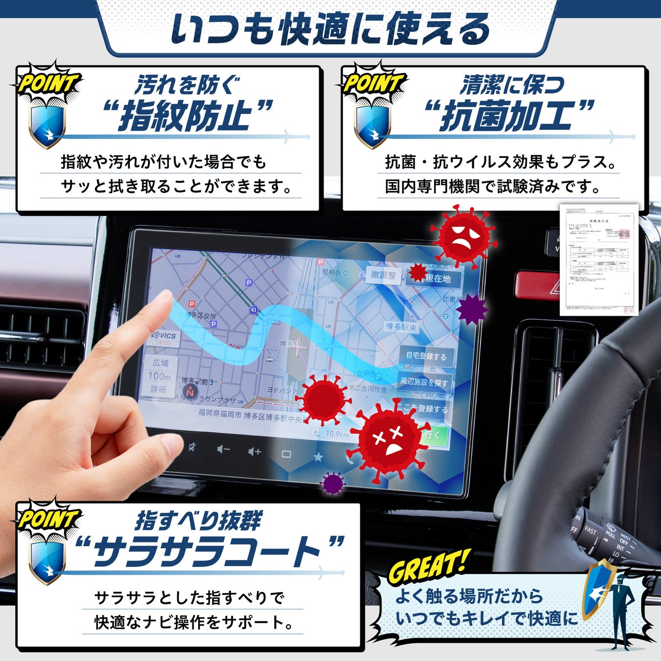 スペーシア / スペーシア カスタム / スイフト / ソリオ / ソリオ バンディット / ワゴンR スマイルに搭載の9インチナビ専用フィルム。納車前に準備しておきたいおすすめ内装アクセサリーです。